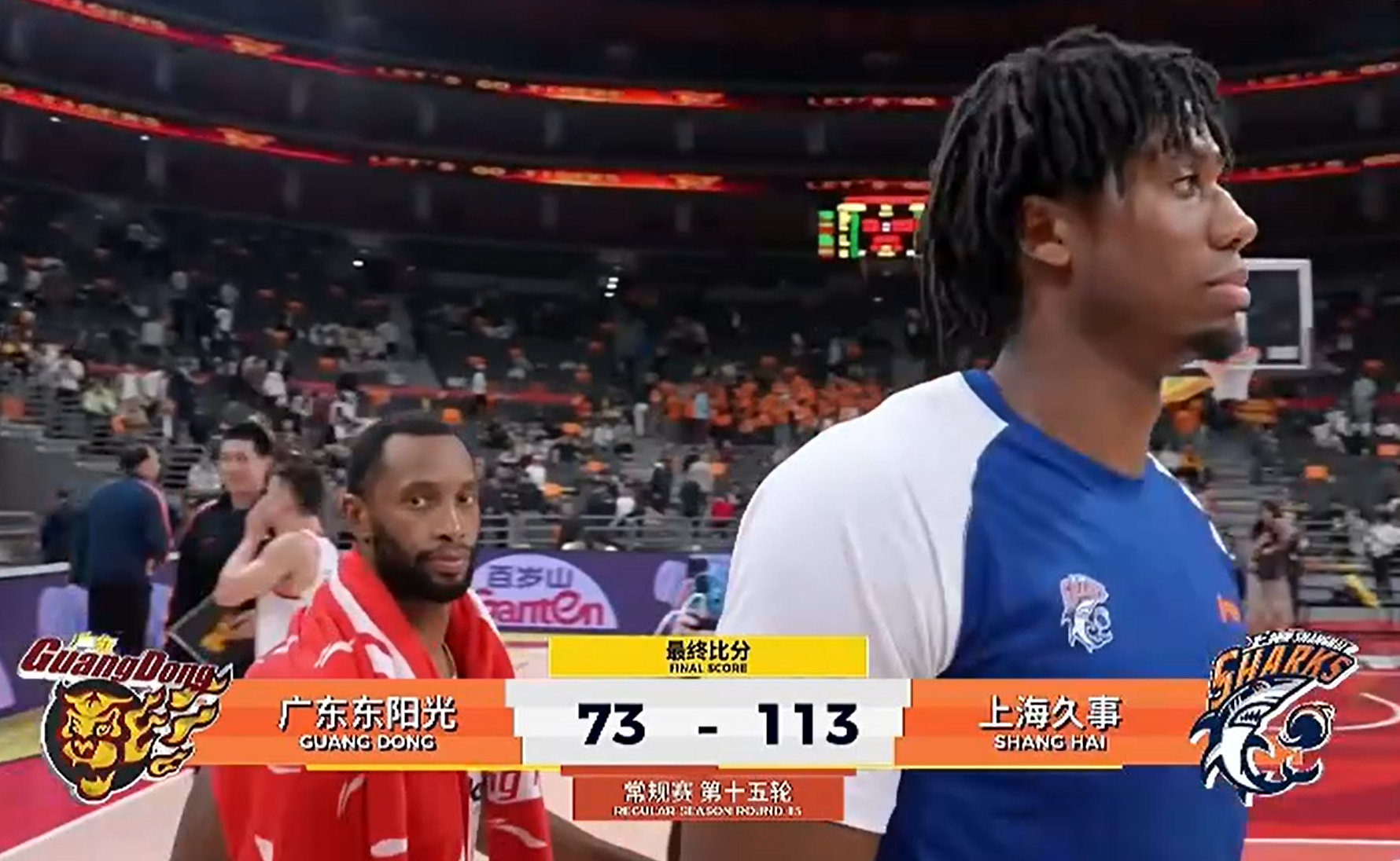 CBA常规赛第十五轮,广东队坐镇主场PK上海队,在赛前,很多人都认为这是一场半斤八两的比赛,由于广东队是主场参赛,因此, 有不少人认为广东队能赢。结果,却是大大出乎意料,广东队以73-113输给了上海队足足40分,遭到了一场溃败。